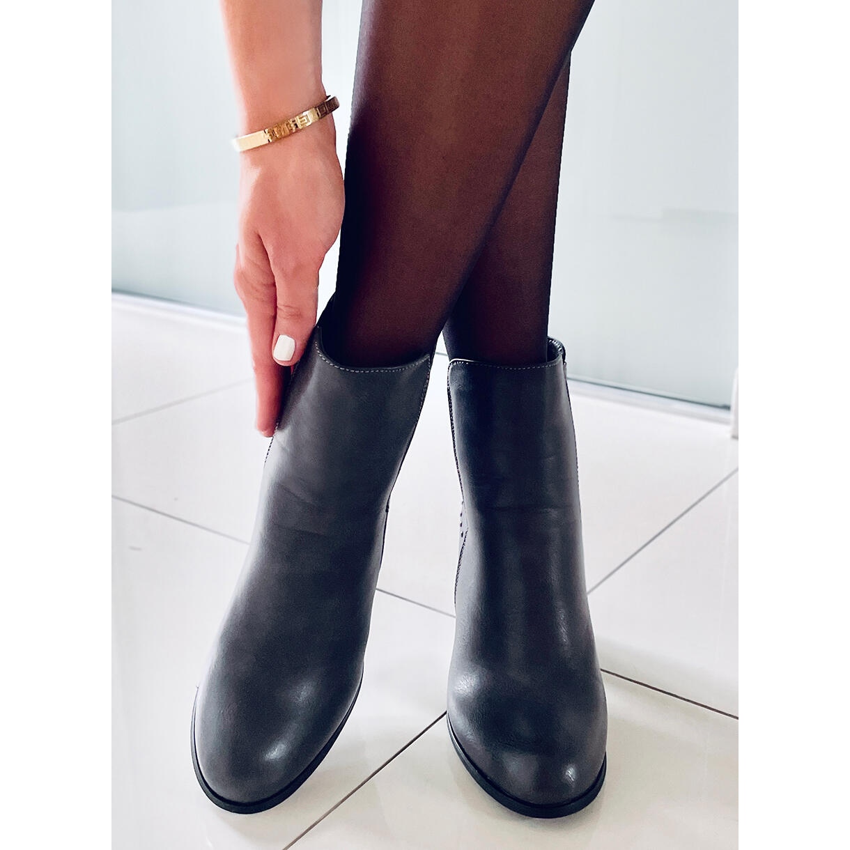 Wir präsentieren Ihnen die klassischen grauen Stiefeletten 88097 Grey mit hohen Absätzen, die mit Sicherheit zu einem unverzichtbaren Bestandteil jeder eleganten und stilvollen Garderobe werden. Diese hochhackigen Chelsea-Stiefel für Damen zeichnen sich durch ihr einzigartiges Design aus, das sich an aktuelle Modetrends orientiert. Auffällige Nieten verleihen Charakter, erregen Aufmerksamkeit und unterstreichen den individuellen Stil des Besitzers.