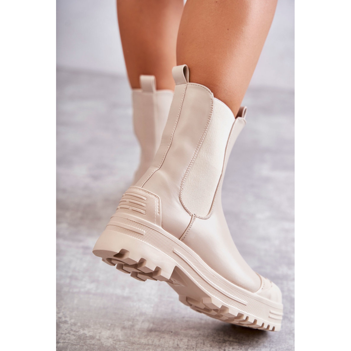Entdecken Sie einzigartigen Stil und Komfort mit klassischen hohen Worker-Stiefeletten in Beige der Marke PG1. Diese außergewöhnlichen Damen-Stiefeletten aus hochwertigem Faux-Wildleder passen perfekt zu den neuesten Trends und vereinen Funktionalität mit modischem Design.