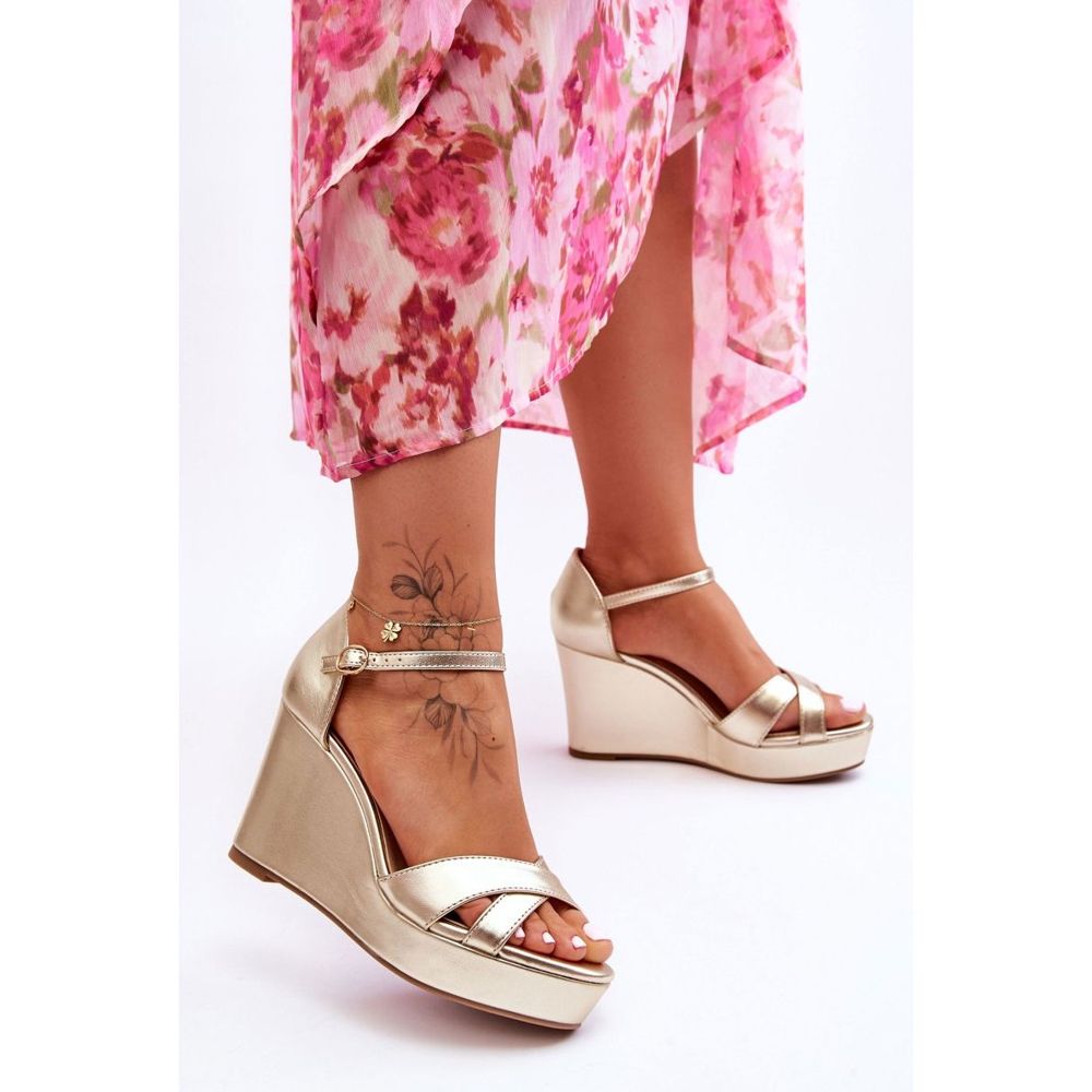Inna marka Klassische Leder-Keilsandalen Golden Givana