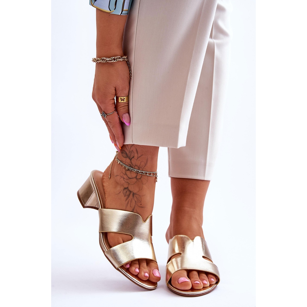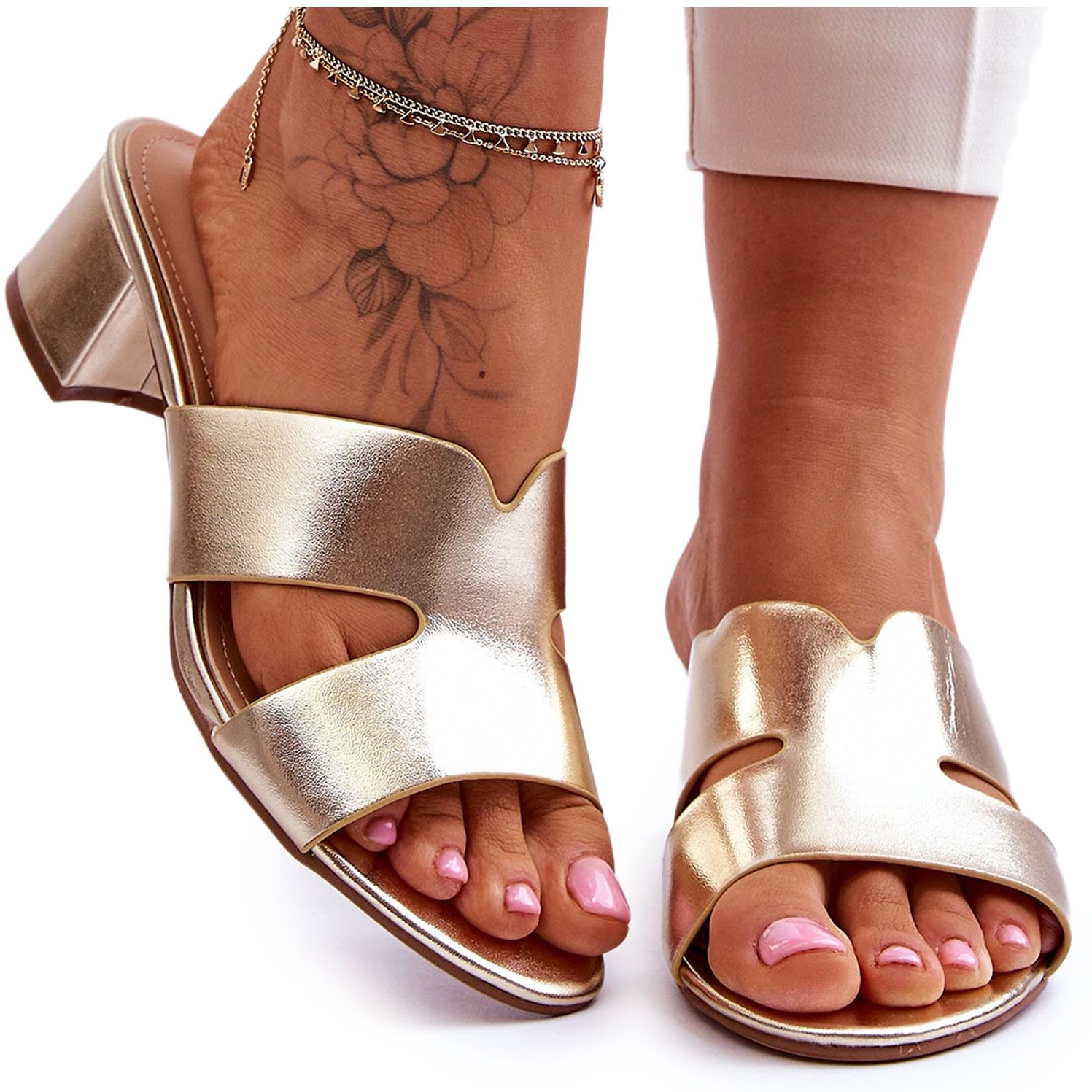 Details: FJ1 Klassische Ledersandalen mit niedrigem Absatz Golden Miley