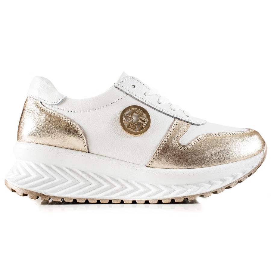 Wir präsentieren klassische Ledersneaker der Marke Filippo, die die perfekte Kombination aus Komfort und Stil darstellen. Diese eleganten Damenschuhe in Weiß mit auffälligen Goldakzenten sind eine tolle Wahl für den Alltag. Dank des weichen, eingearbeiteten Absatzes und der runden Spitze ist das Tragen ein reines Vergnügen.