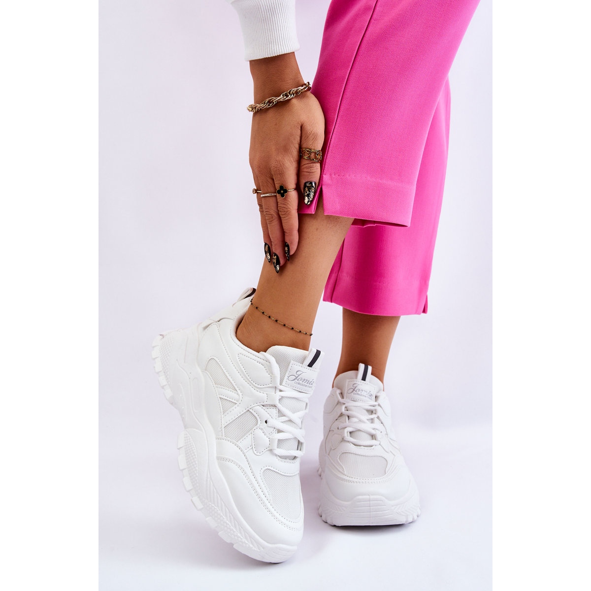 Wir präsentieren klassische Plateau-Sneakers in Weiß Larec vom Hersteller BM – die perfekte Kombination aus Komfort, Stil und Vielseitigkeit! Diese Sportschuhe sind dank ihrer einzigartigen Eigenschaften und Styling-Optionen ein Must-Have in der Garderobe jeder Frau.