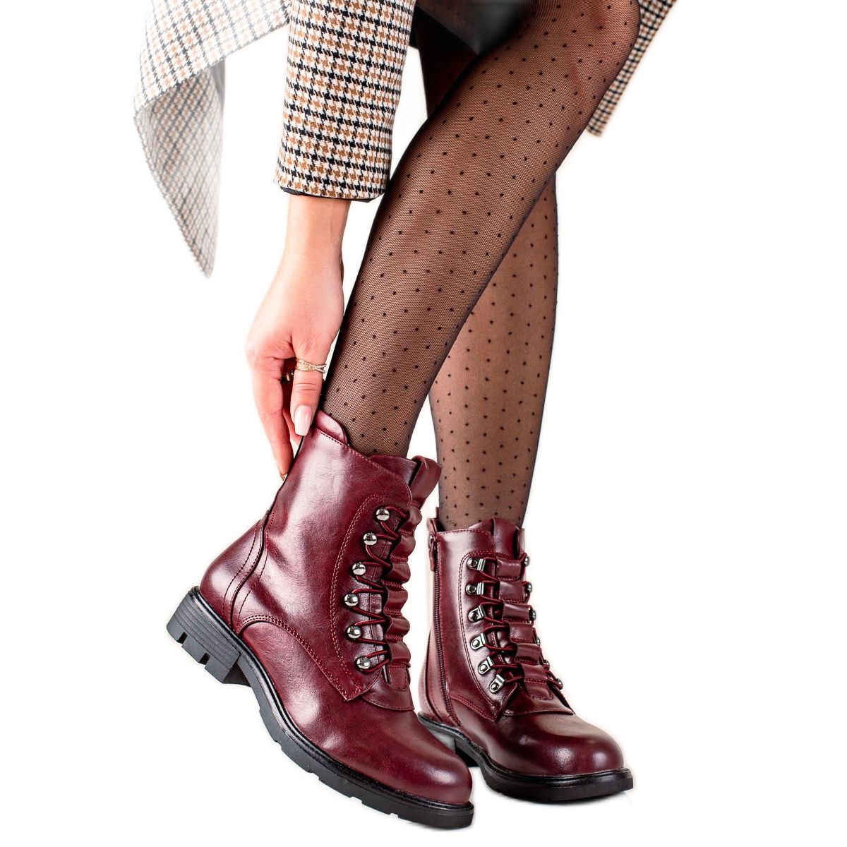 Entdecken Sie Eleganz und Komfort in einem der neuesten Stiefelmodelle der Marke Evento. Diese klassischen Schnürstiefeletten in einem tiefen Burgunderton sind die perfekte Ergänzung für jedes Herbst-Winter-Styling. Dank der eingearbeiteten und versteiften Ferse und der Schafthöhe von 16 cm bieten sie nicht nur einen modischen Look, sondern auch einen hervorragenden Halt für den Fuß.
