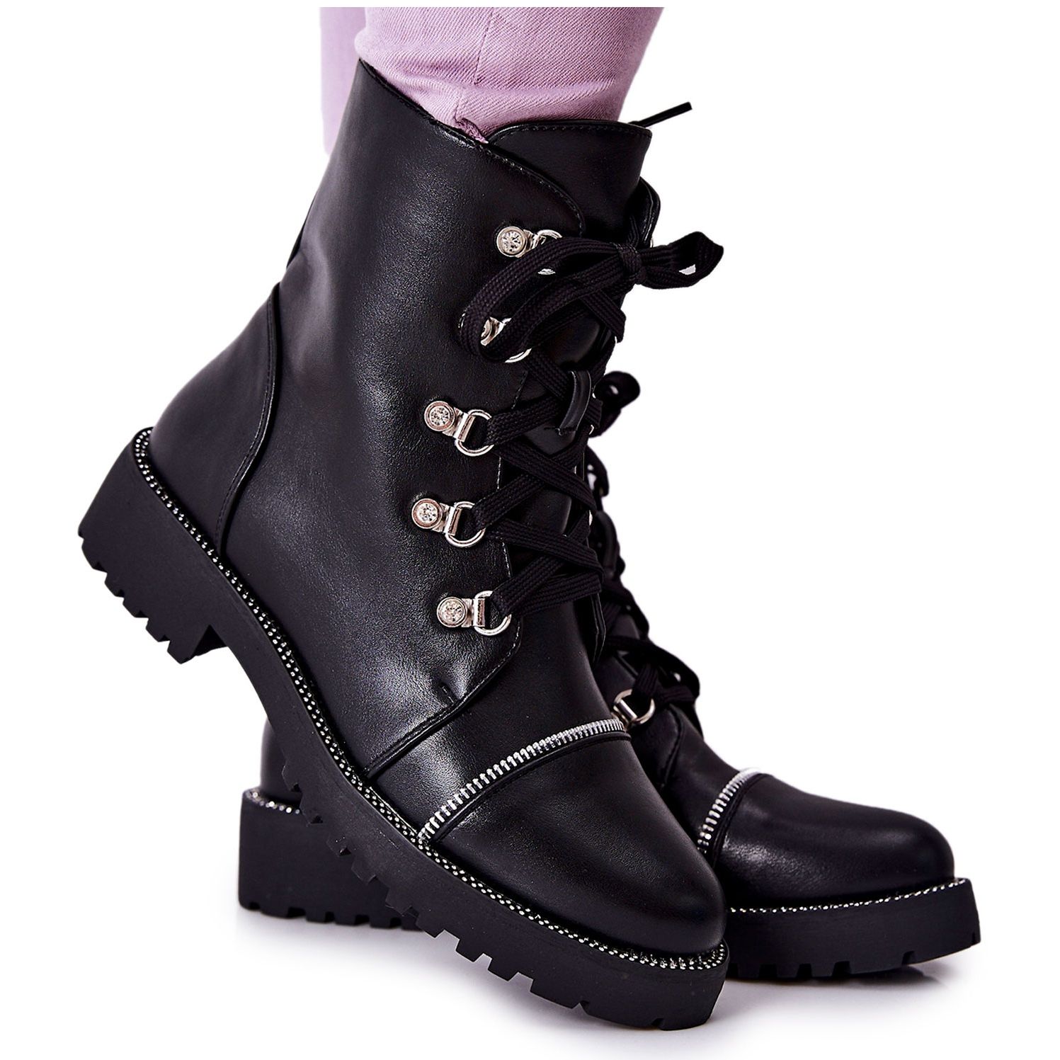 Details: PG1 Klassische schwarze Daiane Lederstiefel mit Schnürung