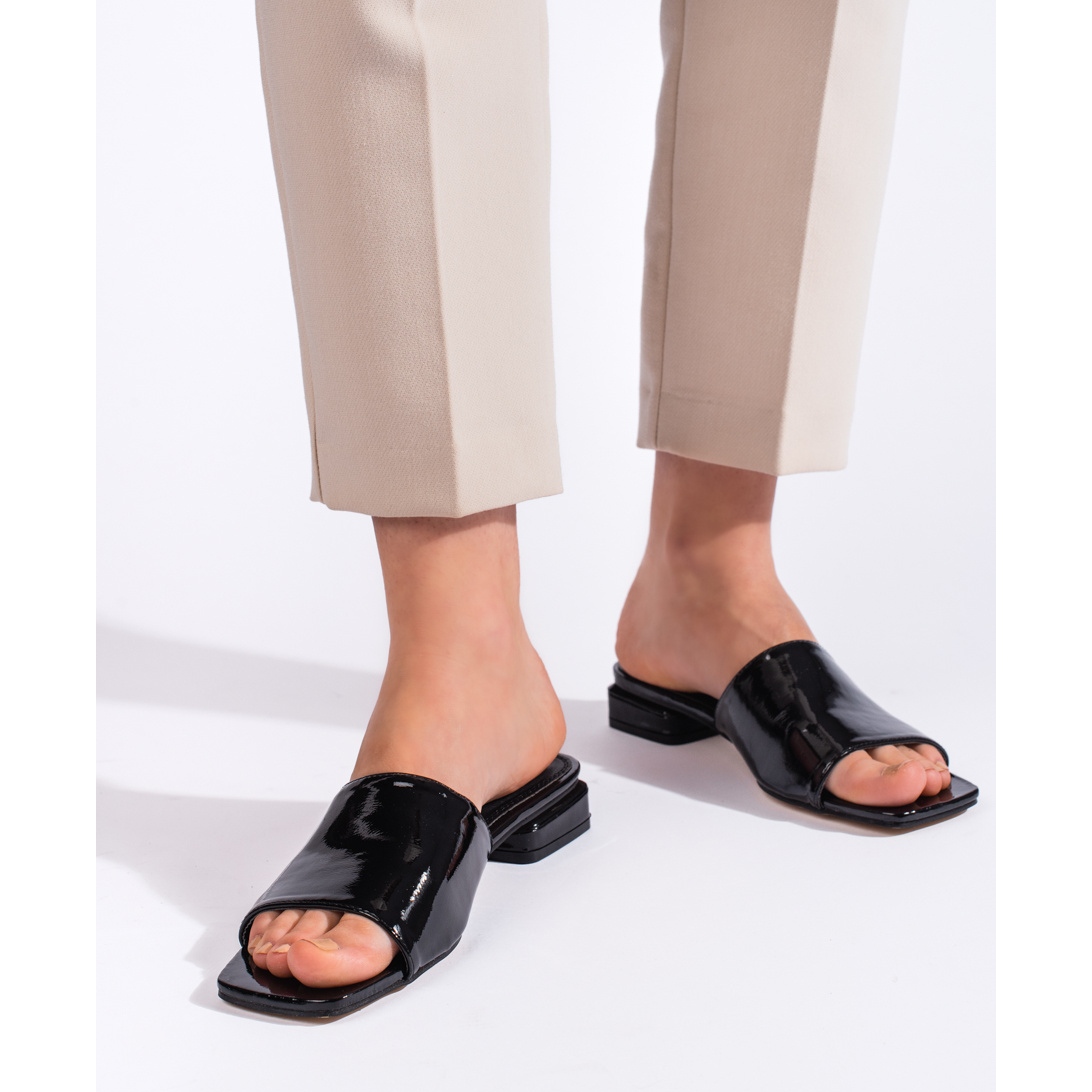 Dank der offenen Befestigung und Insertion ist das Anlegen extrem einfach, und der Gebrauchskomfort erhöht den weichen Einsatz von ökologischem Leder. Die 3 -cm -High Heel bietet zusätzliche Unterstützung, während sie jeden Schritt Klasse hinzufügt, und eine glatte Plastiksohle gewährleistet die Stabilität.