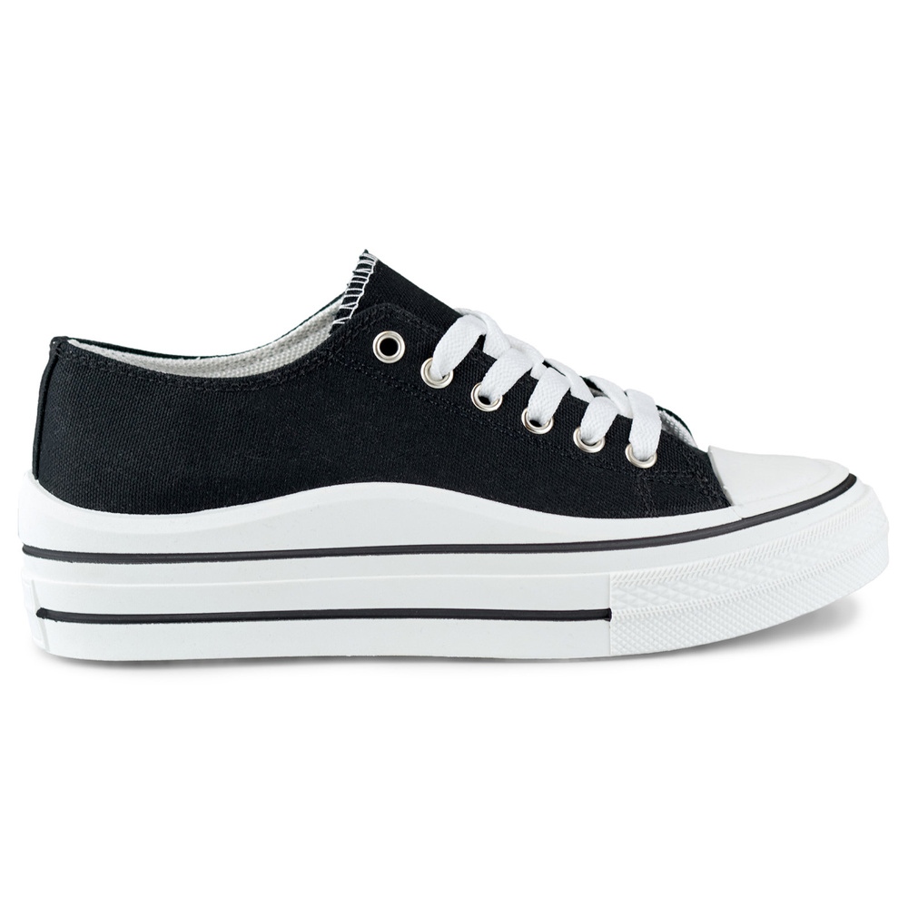 Timeless, schwarze Frauen -Sneakers mit einem Textilobermaterial und einer bequemen Sohle auf der Plattform. Ein einfaches, minimalistisches Design lässt die Schuhe zu vielen alltäglichen Stilisierungen passt - von Jeans bis zu Sommerkleidern. Mit einem runden Zeh, niedrig und leicht, jeden Tag perfekt ausgestattet.