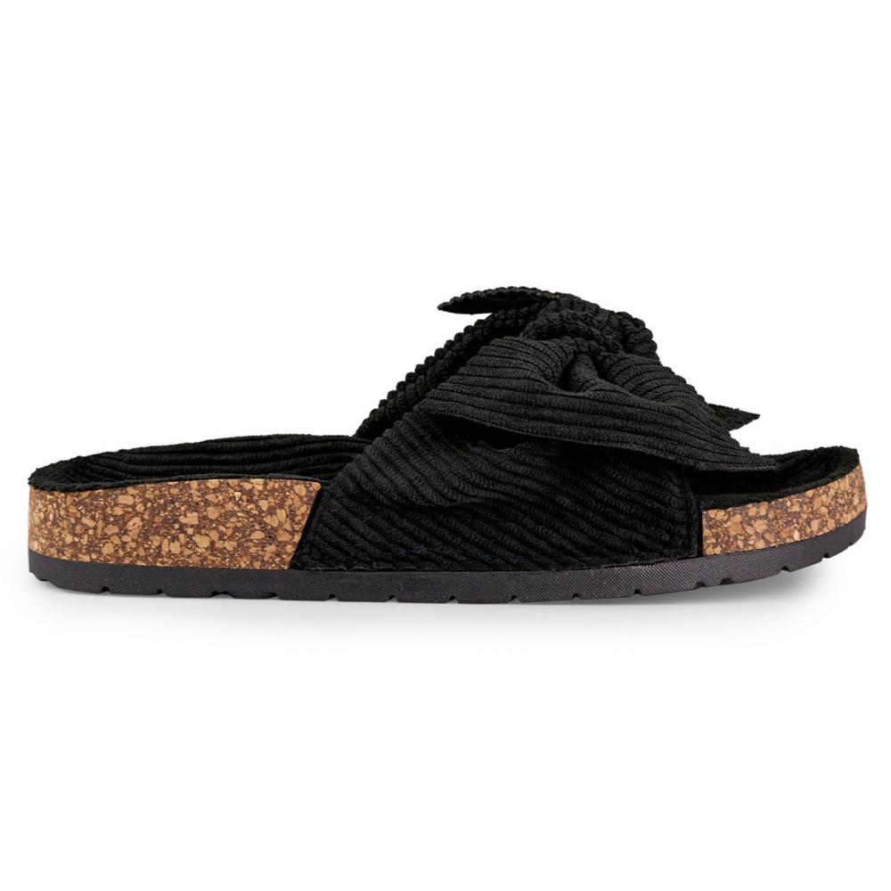 Klassische Wildlederschwarze -Frauen -Pantoffeln mit Bogen - Eleganz und Komfort jeden Tag