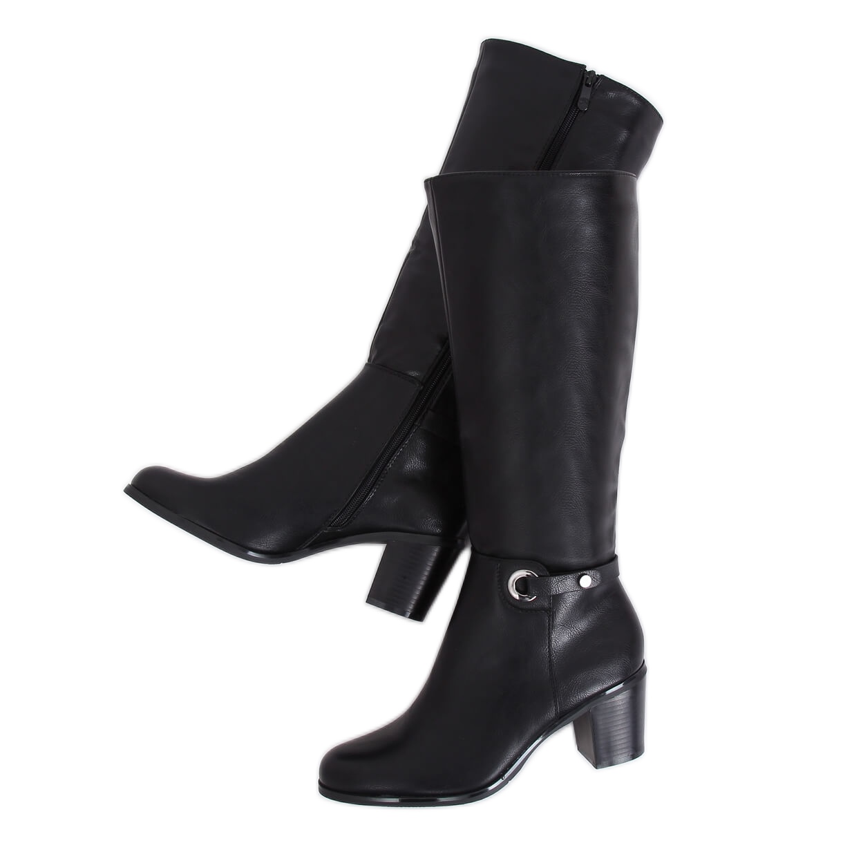 Details: Klassische schwarze High Heels Stiefel BM-9090 Schwarz
