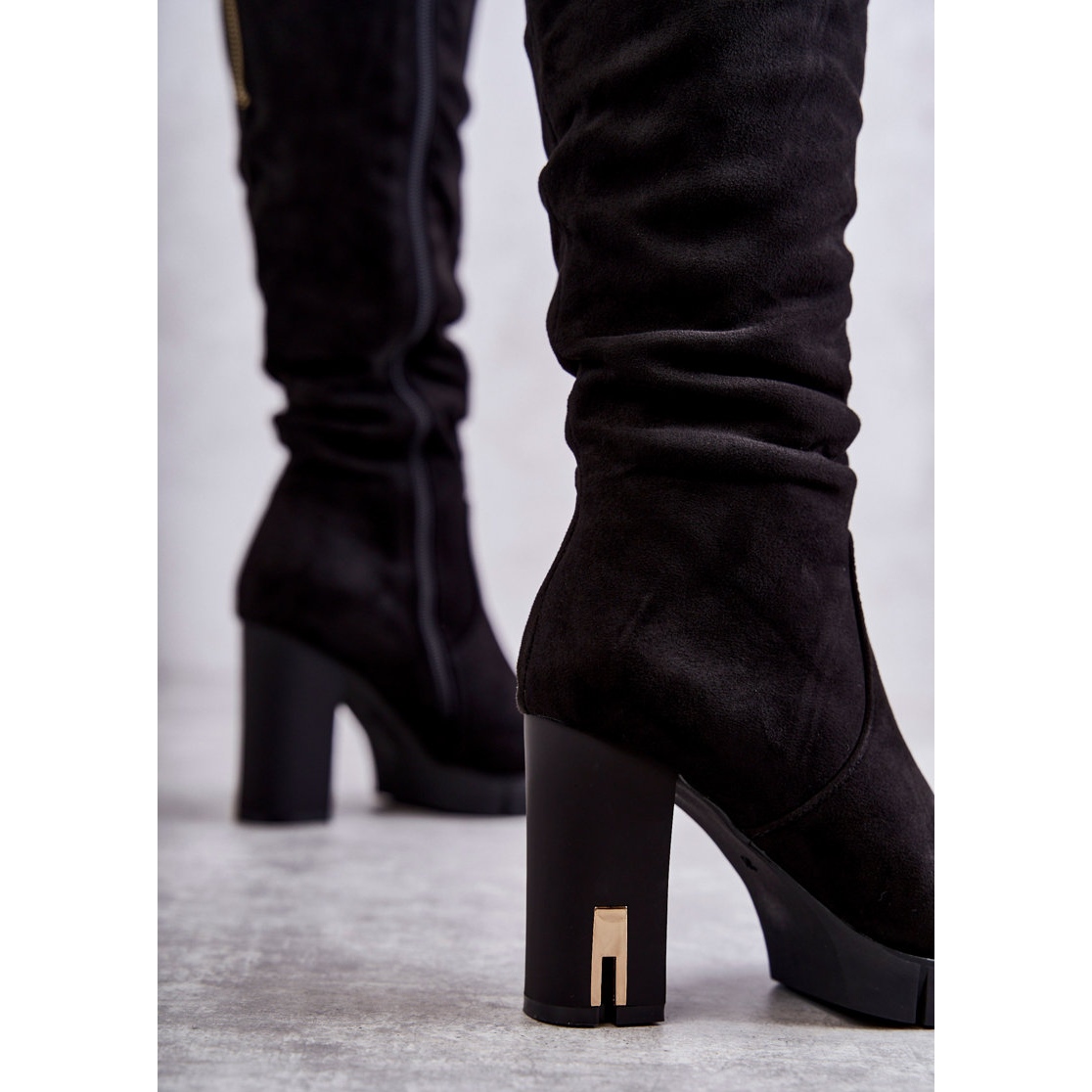 Auf einem stabilen Blockabsatz mit Spiegelzusatz gesetzt, zeichnen sich diese Stiefel durch ihr modernes Design und ihre Eleganz aus. Darüber hinaus erleichtert der Reißverschluss an der Seite des Obermaterials das Anziehen und der dekorative Reißverschluss auf der Rückseite verleiht ihnen einen einzigartigen Charakter. Die abgerundete Spitze und die versteifte Ferse sorgen für ganztägigen Tragekomfort.
