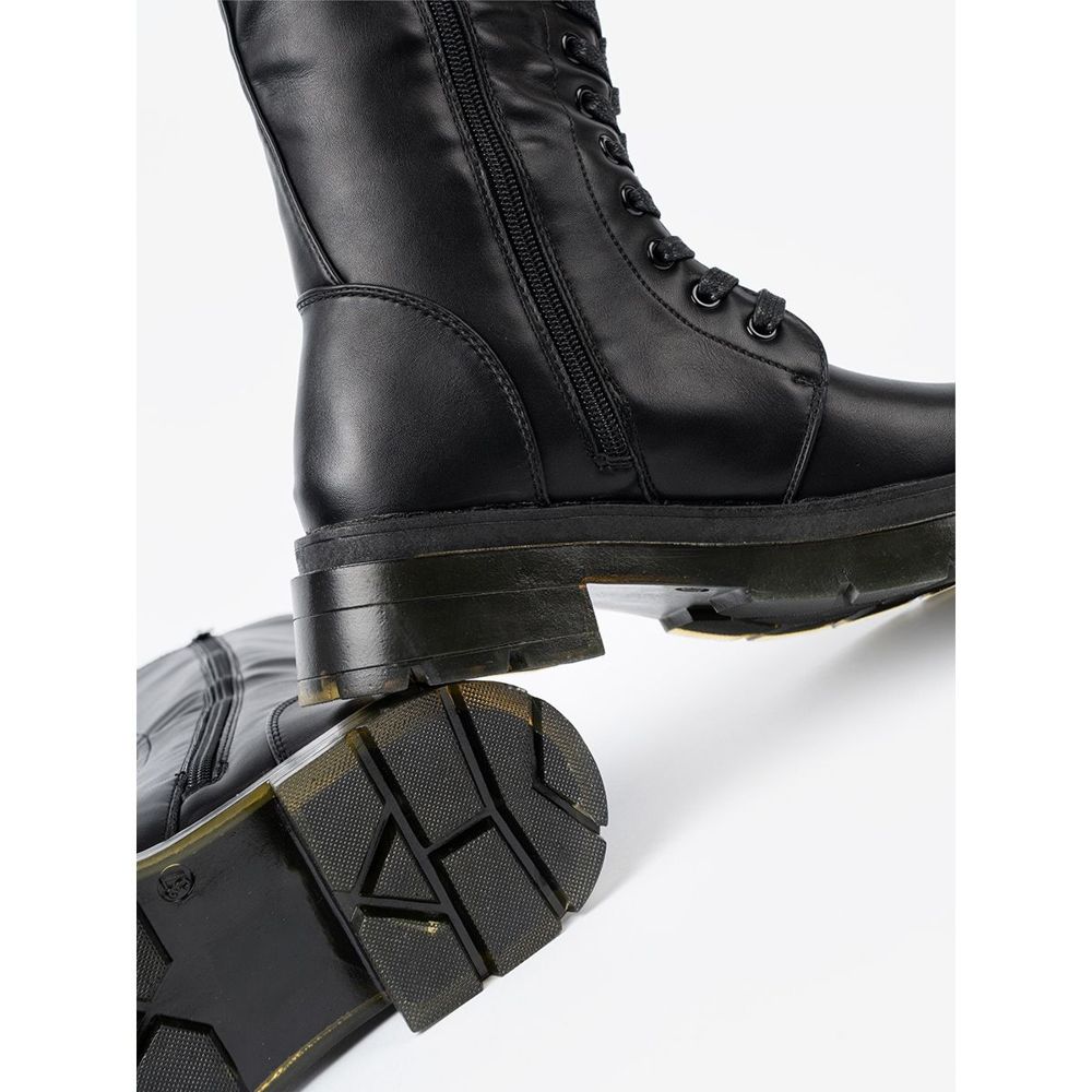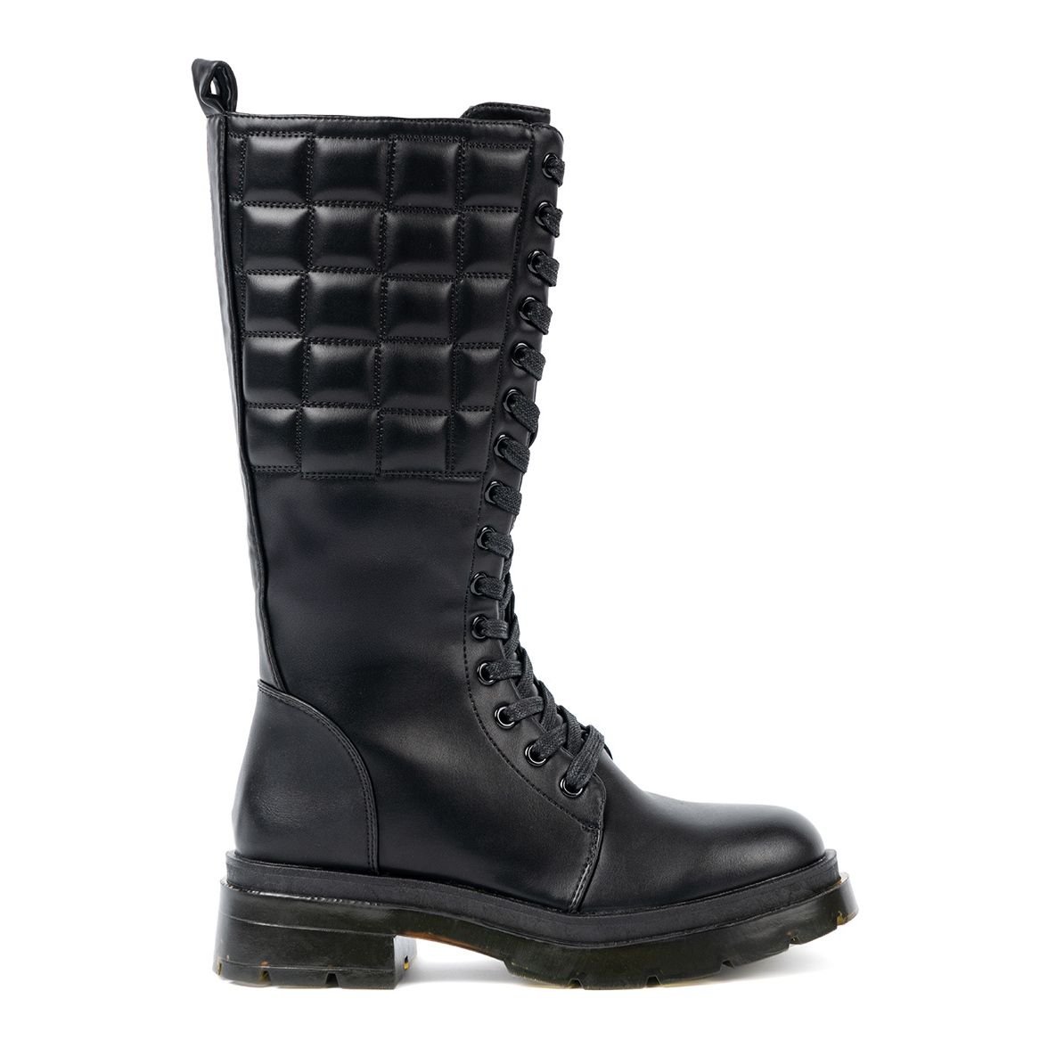 Shelvt Shelvt Klassische schwarze Stiefel mit Schnürung und Schieberegler