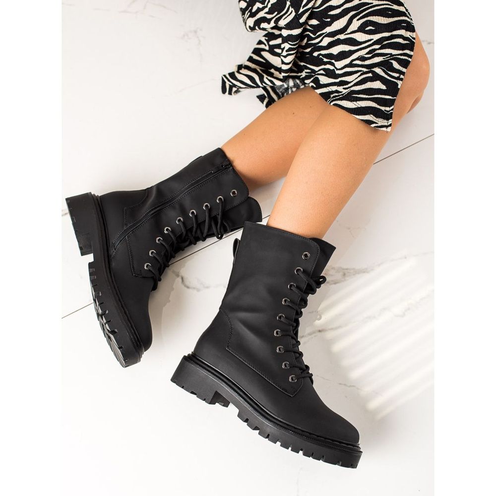 Die schwarzen Worker von Erynn passen perfekt zum Casual- und Rock-Stil und passen hervorragend zu Jeans, Röcken und Leggings. Durch die Schaftweite von 24 cm und die Höhe von 20 cm sind diese Stiefel für verschiedene Beintypen geeignet. Der Reißverschluss und die zusätzliche Schnürung sind praktische Details, die nicht nur das Anziehen erleichtern, sondern auch dem gesamten Styling Charakter verleihen.