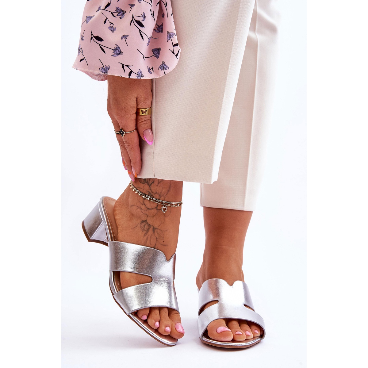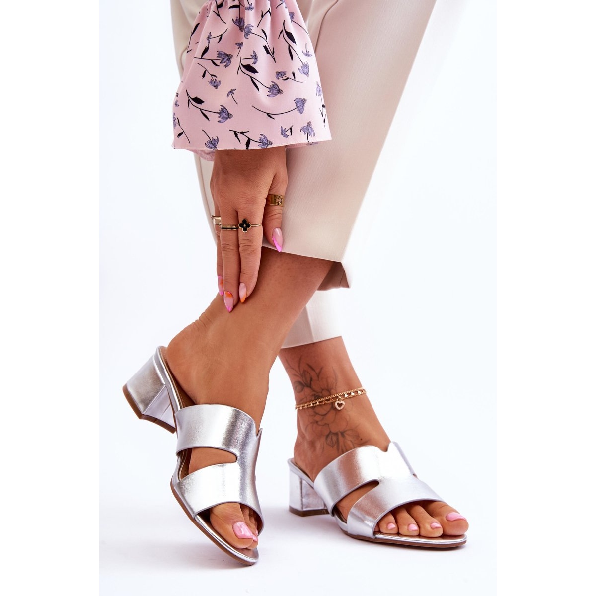 Details: Klassische silberne Miley-Lederpantoffeln mit niedrigem Absatz