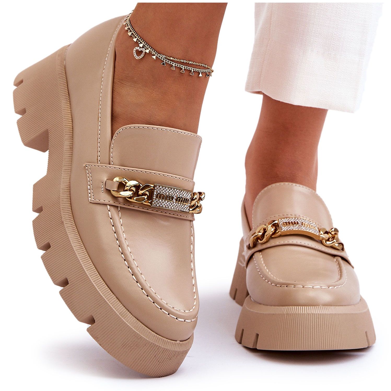 Entdecken Sie den Charme klassischer Slipper auf einer massiven PS1-Plattform in einem wunderschönen Beigeton! Diese stilvollen Damenschuhe sind die perfekte Wahl für Frauen, die Komfort mit einem modischen Look verbinden möchten. Dank des massiven Plateaus und des flachen Absatzes bieten die Loafer ganztägigen Komfort und erhöhen gleichzeitig die Höhe um einige Zentimeter.