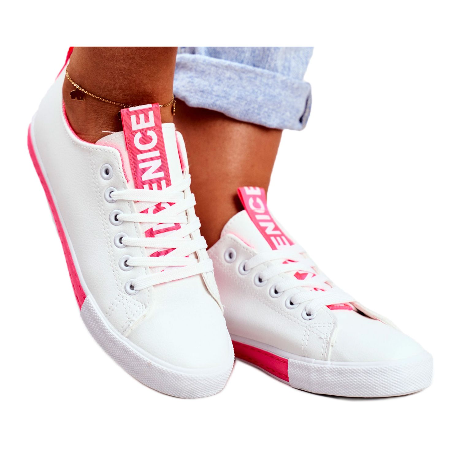 Die Sneaker zeichnen sich durch ein einzigartiges Detail aus – eine Verzierung an Ferse und Zunge in Form der Aufschrift „NICE“, die ihnen Charakter und Modernität verleiht. Sie bestehen aus hochwertigem ökologischem Leder und sind nicht nur ästhetisch, sondern auch umweltfreundlich.