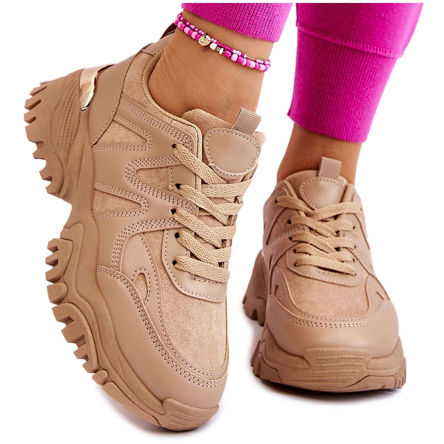 KeeShoes bietet die beige Farbe dieses Modells als universelle Farbe an, die problemlos zu einer Vielzahl von Garderobenfarben passt. Es ist ein unverzichtbares Element in der Garderobe jeder Frau, die Funktionalität mit Streetwear-Modetrends kombinieren möchte.
