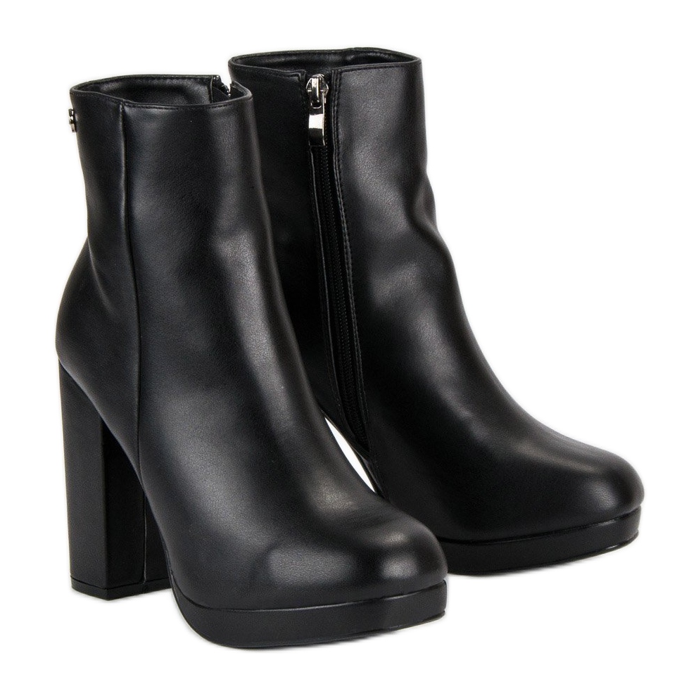 Schwarze Stiefeletten mit hohen Absätzen passen sowohl zu Jeans als auch zu eleganten Kleidern perfekt und sind somit eine universelle Ergänzung für jedes Styling. Sie sind bequem und leicht und scheuern nicht, was sie zur idealen Wahl für lange Tage unterwegs macht.