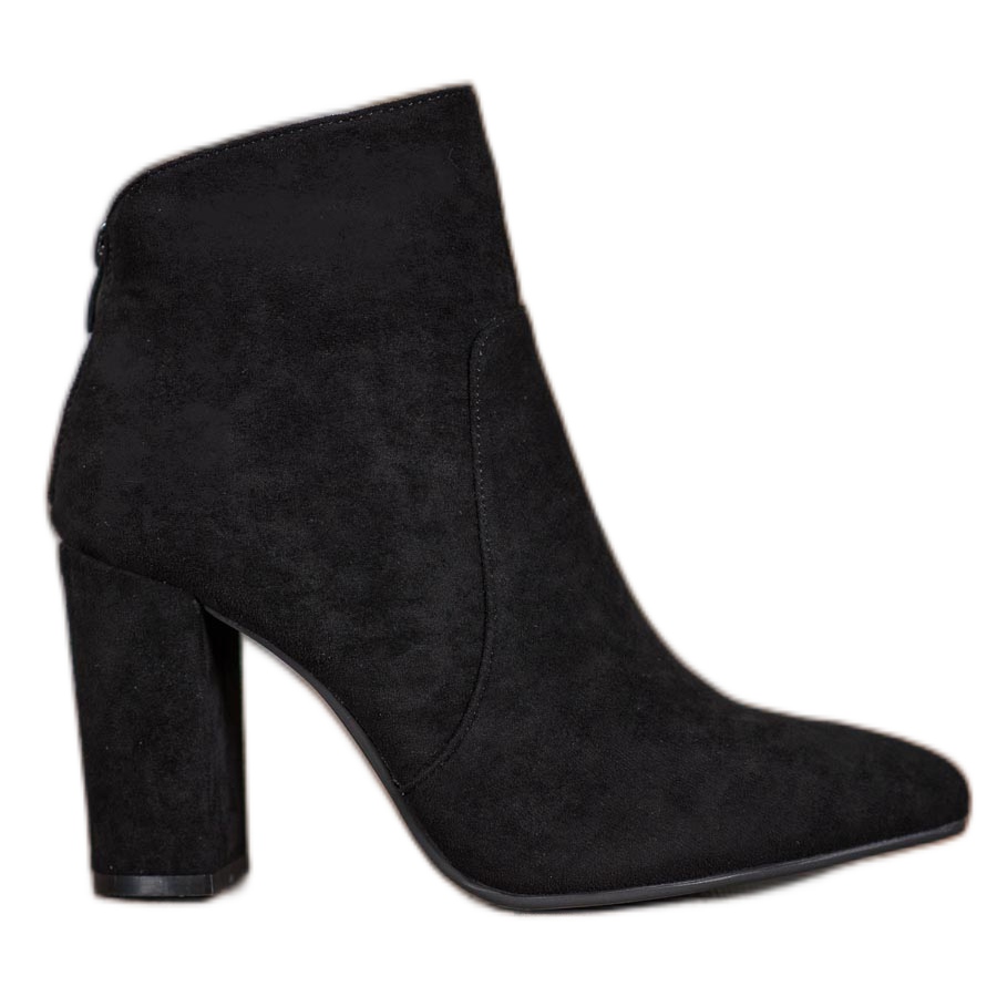 Entdecken Sie Eleganz und Komfort mit klassischen Stiefeletten mit hohen Absätzen von Ideal Shoes. Diese Stiefeletten sind aus ökologischem Wildleder höchster Qualität in tiefschwarzer Farbe gefertigt und vereinen modernen Stil mit zeitlosem Design. Ihre 9 Zentimeter hohen Absätze auf einem massiven Block verleihen der Silhouette nicht nur optische Leichtigkeit, sondern sorgen auch für Tragekomfort.