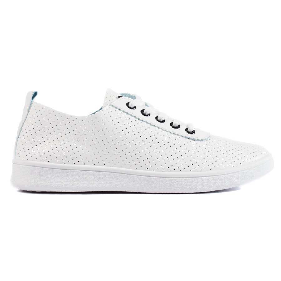 Wir bieten Frauen klassische weiße Turnschuhe von einer seriösen Marke an, die perfekt Sport und Freizeitstil kombiniert. Sie bestehen aus hochwertigen Textilmaterialien und bieten Komfort und Haltbarkeit. Ihre weiche, gebaute UP -Ferse und eine runde Nase machen sie extrem bequem zu tragen, perfekt für Spaziergänge und tägliche Produkte.