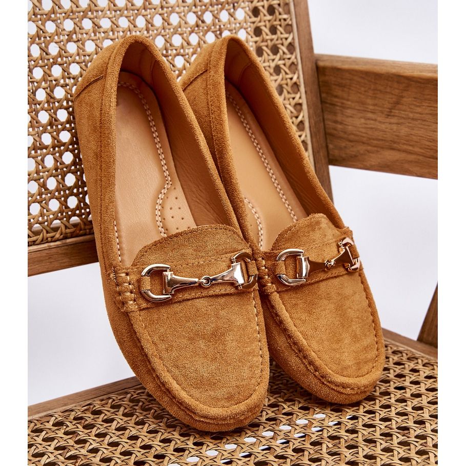 Details: Klassische Wildledermokassins mit Kamelverzierung braun