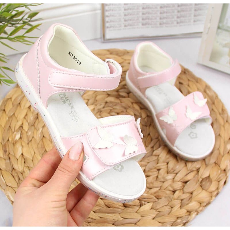 Die zarten, hellrosa amerikanischen Clubsandalen für den Komfort und den alltäglichen Komfort von Mädchen. Niedrig geschnittene und praktische Klettverschluss erleichtern das Anziehen, und universelle Farben machen die Schuhe zu vielen Sommerstilisationen.