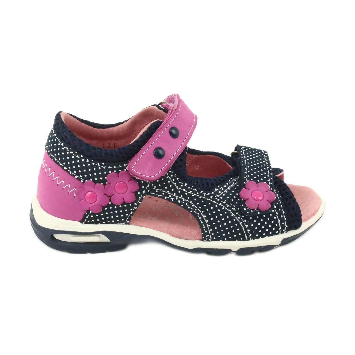Diese bezaubernden Sandalen sind in zwei Farben erhältlich: Marineblau und Rosa, verziert mit kleinen weißen Punkten und Verzierungen in Form von rosa Blumen. Dank des Klettverschlusses lassen sie sich leicht an den Kinderfuß anpassen, was den Tragekomfort erhöht. Der steife Absatz sorgt für ausreichend Stabilisierung und durch die profilierte Innensohle passen sich die Sandalen perfekt der Anatomie des Fußes an.