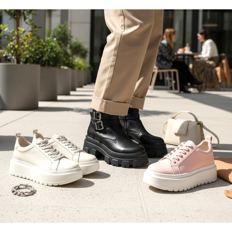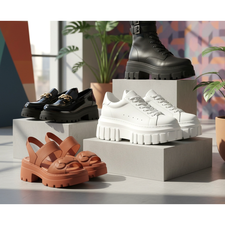 Der Trend zu klobigen Schuhen geht über reine Turnschuhe hinaus. Auf dem Markt finden Sie Sandalen, Mokassins, Stiefeletten und sogar elegante Pumps mit dicker Sohle. Dadurch kann jeder ein Modell finden, das seinem Stil und seinen Bedürfnissen entspricht.