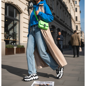 Auch Männer können mit Erfolg klobige Schuhe tragen. Klobige Sneaker in neutralen Farben – Schwarz, Weiß oder Grau – passen perfekt zu lockeren Hosen mit weitem Bein und übergroßen Sweatshirts. Der Schlüssel zum Erfolg liegt in der Wahrung der Proportionen – wählen Sie lockere Kleidungsstile, die zu massiven Schuhen passen.