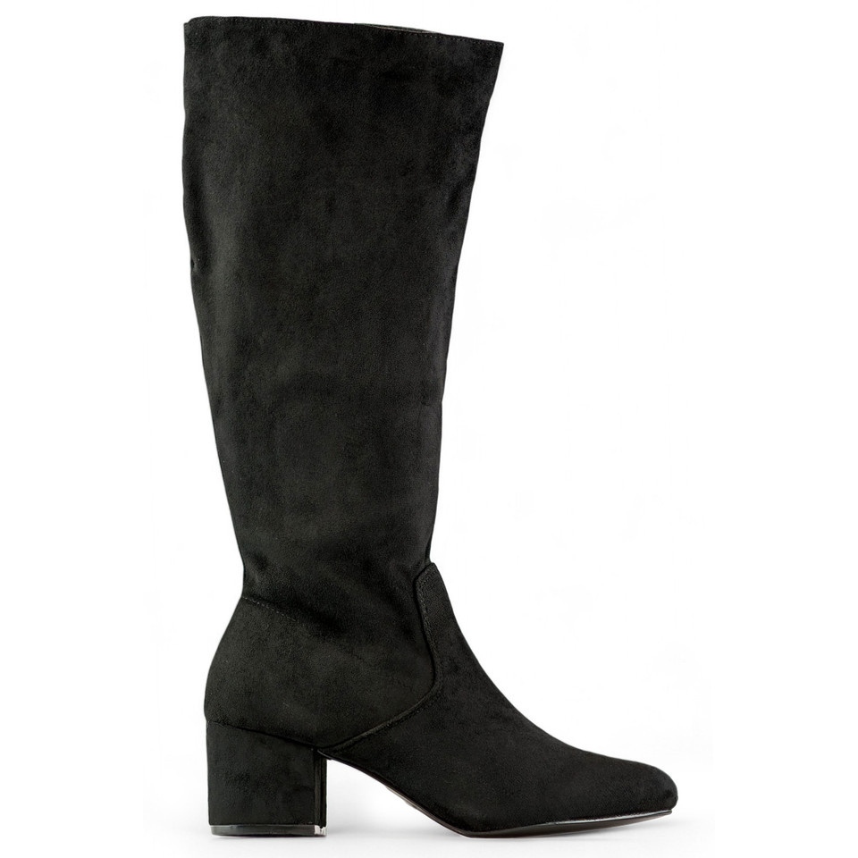 Inna marka Kniehohe Stiefel aus schwarzem Wildleder, Damenstiefel mit niedrigem Absatz