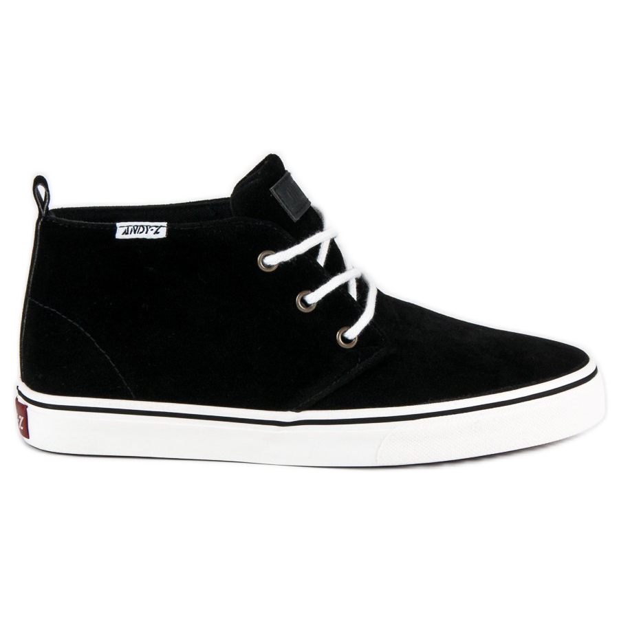 Andy Z-Sneaker sind universell einsetzbar – sie eignen sich sowohl für Frühling und Sommer als auch für die kühleren Herbst- und Wintertage. Schwarze Wildlederschuhe mit kurzer weißer Schnürung sind eine perfekte Ergänzung zu lässigen Styles und das ANDY-Z-Logo auf der Zunge und auf der Rückseite der Sohle unterstreicht ihren einzigartigen Stil.