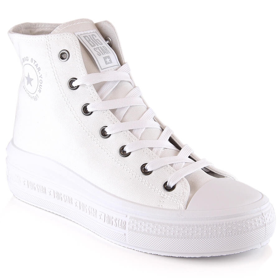 Damen-High-Top-Sneaker auf weißem Plateau der Marke Big Star sind eine ausgezeichnete Wahl für Frauen, die Wert auf Komfort und einen modischen Look legen. Das Modell LL274A183 zeichnet sich nicht nur durch sein elegantes Design aus, sondern auch durch seine Funktionalität, die es perfekt für Frühlings- und Herbsttage macht.