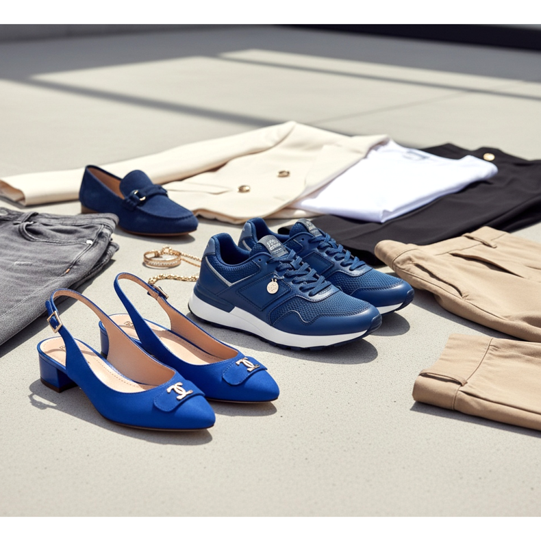Kobaltblaue Sneaker passen hervorragend zu grauen oder beigen Jeans und einem weißen T-Shirt. Der Effekt ist frisch, jugendlich und sehr modisch. Kobaltblaue Penny-Schuhe oder Loafer in Kombination mit einer cremefarbenen Jacke und einer schwarzen Hose sind perfekt für das Büro – ein kräftiger Farbakzent sorgt für Aufmerksamkeit, ohne den professionellen Look zu stören.