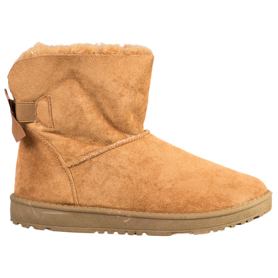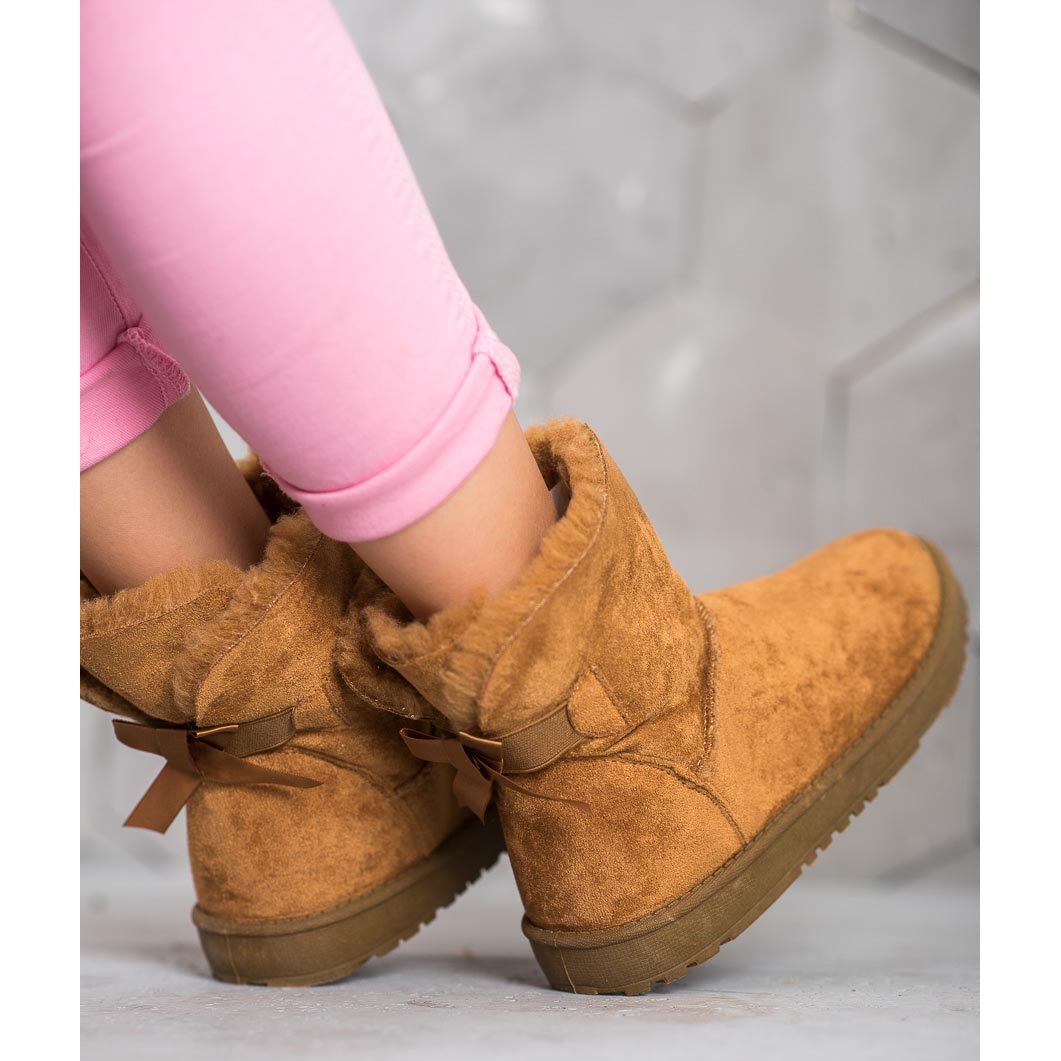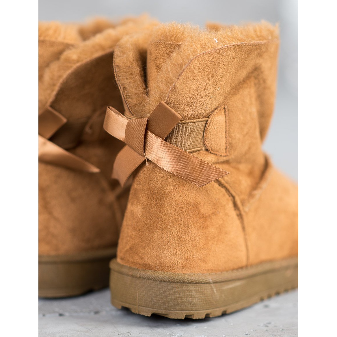 Bequeme braune Mukluks von Haver sind die perfekte Wahl für kältere Tage. Diese eleganten knöchelhohen Schuhe vereinen modisches Design mit höchstem Komfort. Aus hochwertigem ökologischem Wildleder gefertigt, sehen sie äußerst stilvoll aus und dekorative Schleifen auf der Rückseite verleihen ihnen einen einzigartigen Charakter.