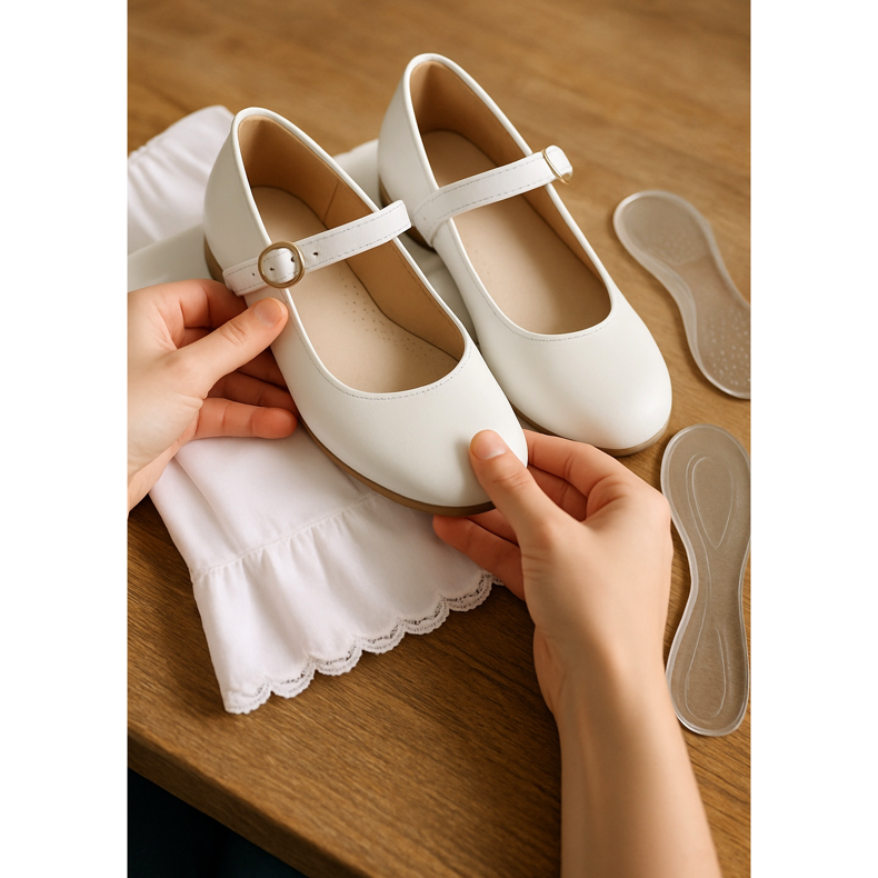 Bei der Wahl der Kommunionschuhe für ein Mädchen sind mehrere Dinge wichtig. Probieren Sie die Schuhe immer zuerst mit Ihrem Kind an, um sicherzustellen, dass sie perfekt passen – zu enge Schuhe können den ganzen Tag über zu Beschwerden führen, und zu enge Schuhe können zu Scheuerstellen führen. Überprüfen Sie zweitens, ob die Schuhe über eine orthopädische Einlegesohle verfügen – diese sorgt für zusätzlichen Komfort für die Füße des Kindes. Drittens wählen Sie Schuhe aus Naturleder oder hochwertigem Material, das atmungsaktiv und weich ist. Viertens: Denken Sie daran, rechtzeitig Schuhe zu kaufen, damit Sie sie vor dem großen Tag einlaufen können – Ihr Kind sollte vor der Kommunion einige Tage lang neue Schuhe tragen, um sich daran zu gewöhnen. Fünftens: Wenn Ihre Schuhe orthopädische Einlagen benötigen, sollten Sie über den Kauf dieser Einlagen nachdenken – sie können den Tragekomfort Ihrer Schuhe den ganzen Tag über verbessern. Sechstens: Überprüfen Sie die Rückgabebedingungen – wenn die Schuhe nicht passen oder unbequem sind, sollten Sie sie zurückgeben können.