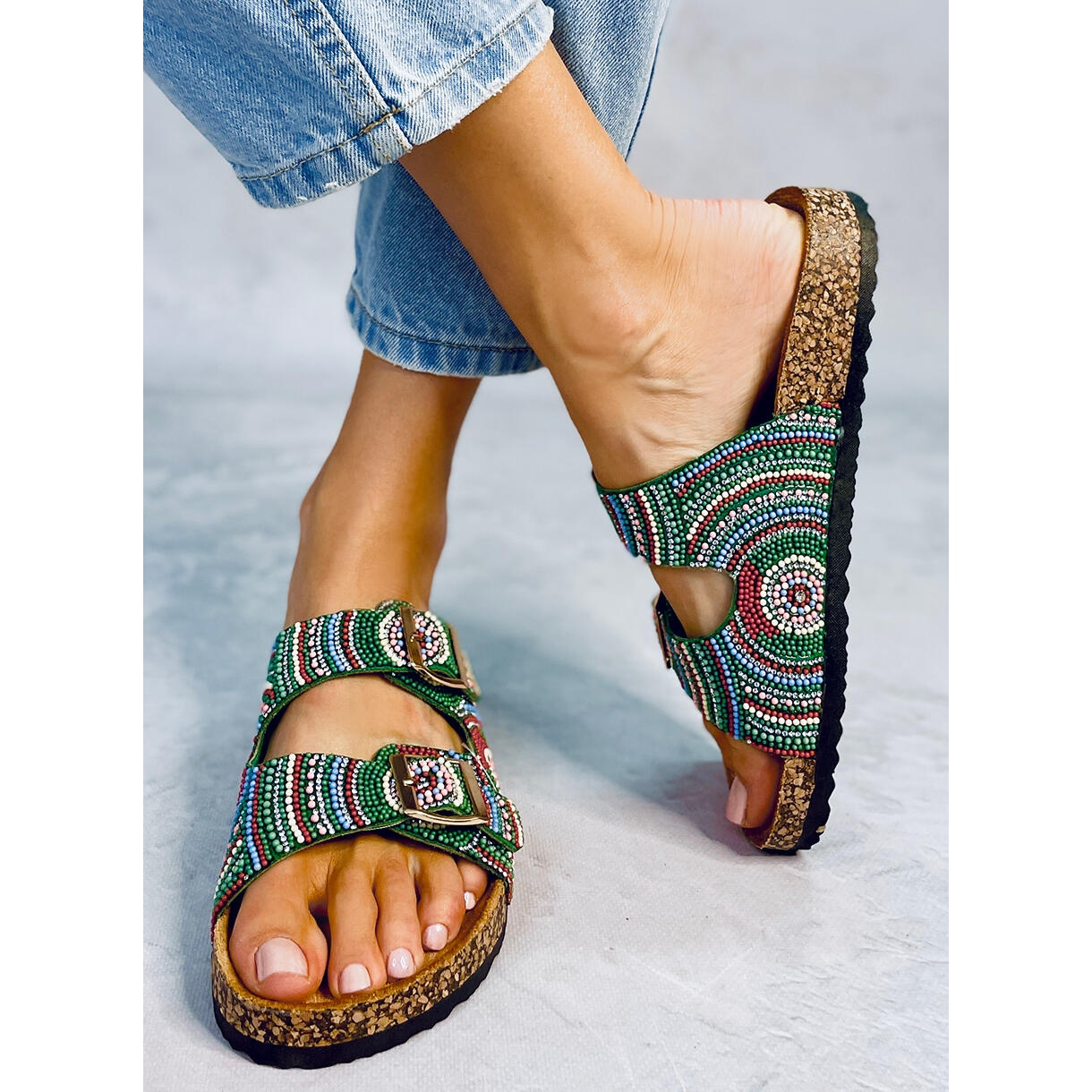 Sommer, komfortabel und voller Charakter - Frauenzusammenfassung von Seastar Adaor Green ist die perfekte Wahl für warme Tage. Die Korksohle mit einer niedrigen Plattform (ca. 3 cm) sorgt für Stabilität und Leichtigkeit, und mehrfach gefärbte Perlen in Kombination mit glänzenden Zirkonen verleihen einen Urlaub, ethnischer Charme (dominantes Muster: Aztec).