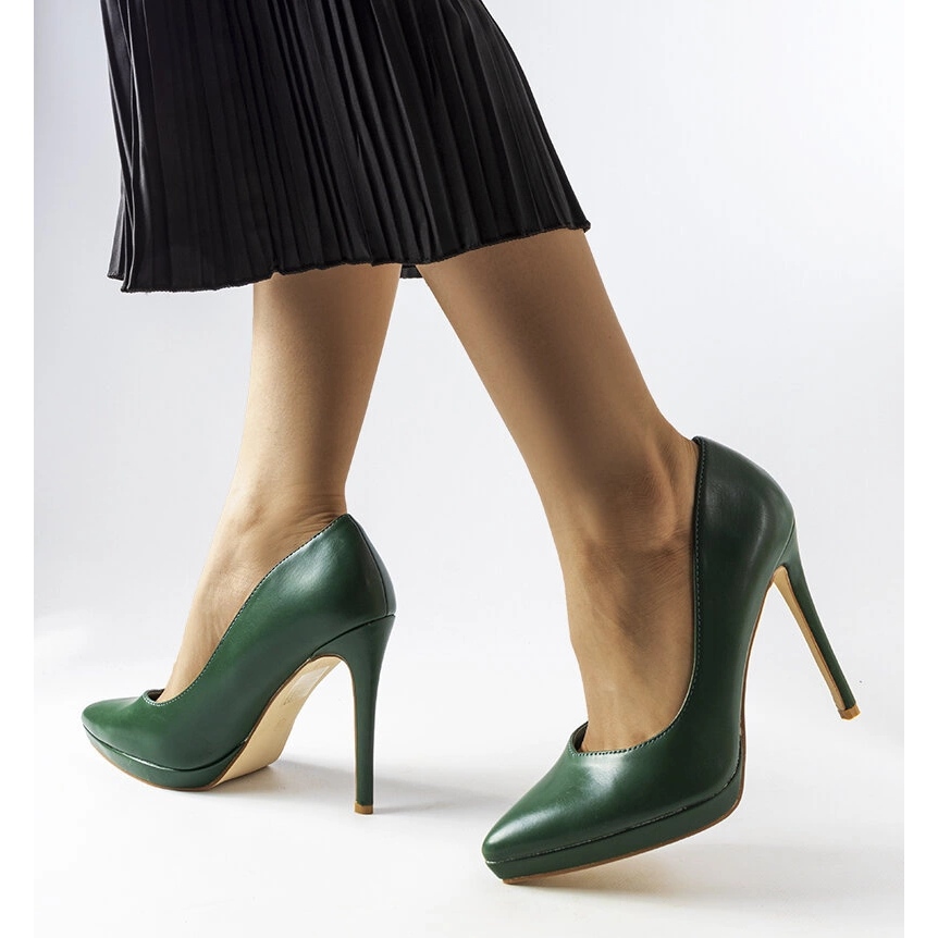 Kristin Dark Green High Heels sind zeitlose Pumpen, die jeder Stylisierung Stil verleihen - vom Abend bis hin zu eleganteren Sets zum Büro. Der schlanke, spitze Zeh und die hohe Absatz betonen die weibliche Figur, und der tiefe Schatten des dunklen Grüns bringt einen raffinierten Farbakzent mit sich.