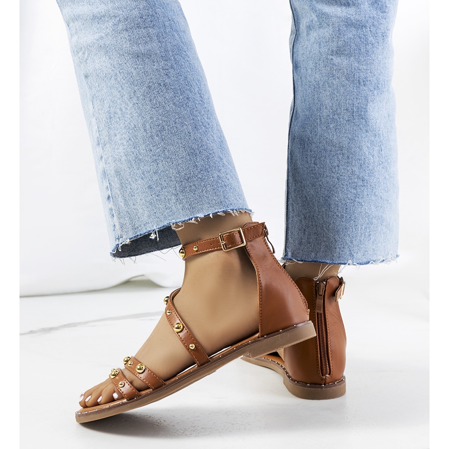 Braune Sandalen mit Krolt-Nieten sind die perfekte Ergänzung zum Sommer-Styling und werden mit Sicherheit die Blicke auf sich ziehen. Sie bestehen aus hochwertigem ökologischem Leder und bieten nicht nur Tragekomfort, sondern auch Haltbarkeit. Glänzende Nieten verleihen ihnen Charakter und machen sie zu einem modischen Akzent für jedes Outfit.