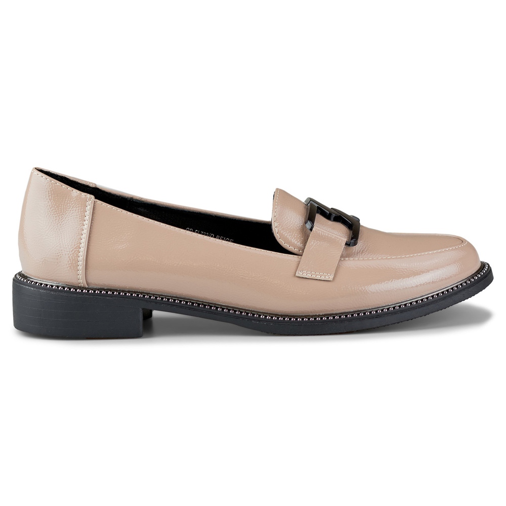 Lackierte Frauenschuhe - Moccasins mit einer Verzierung
