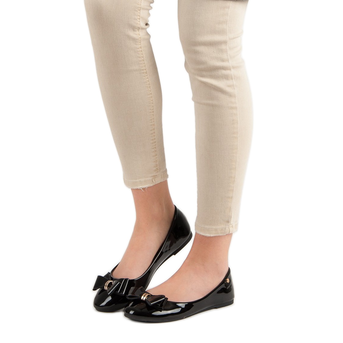 Dabei handelt es sich um elegante Lack-Ballerinas mit Schleife von Vinceza, die eine perfekte Wahl für moderne Frauen sind, die Wert auf Stil und Komfort legen. Ihre klassische schwarze Farbe macht sie zu einer universellen Ergänzung jeder Garderobe – sie passen perfekt sowohl zu alltäglichen als auch zu eleganteren Stilen.