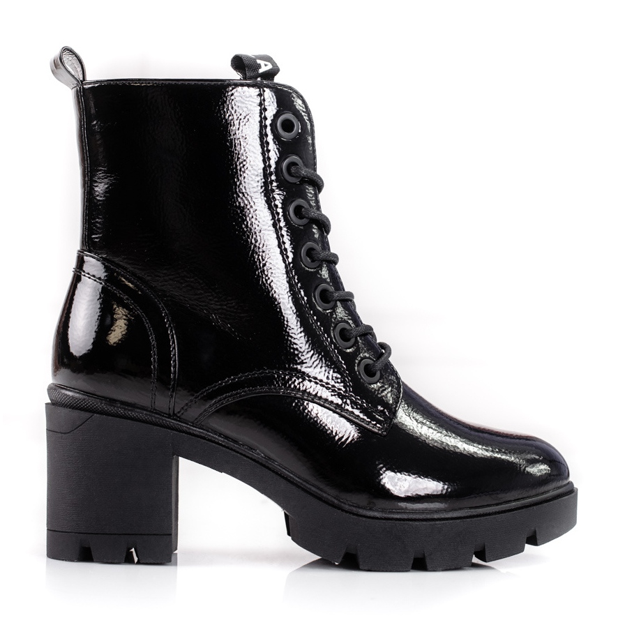 Details: Lackierte Damen-Arbeiterstiefel mit hohem Absatz schwarz