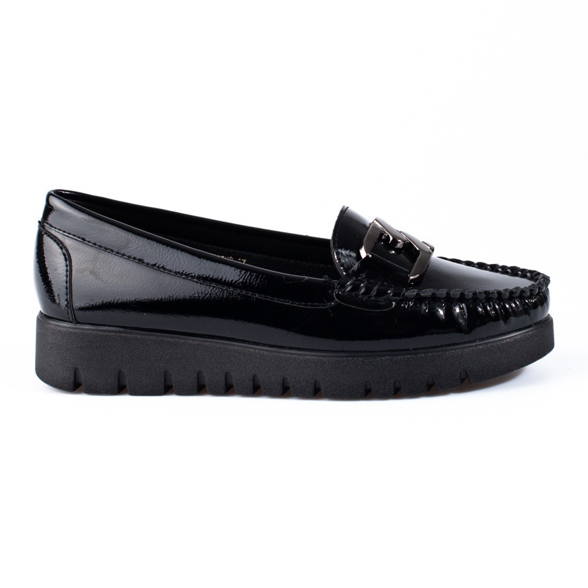 Damenmokassins von Potocki sind die perfekte Wahl für Frauen, die Wert auf Eleganz und Komfort im Alltag legen. Diese Slipper aus Lackleder in klassischem Schwarz passen perfekt sowohl zu lässigen als auch zu formelleren Stilen. Dank des integrierten Absatzes und des Slip-On-Befestigungssystems ist das Anziehen schnell und bequem.