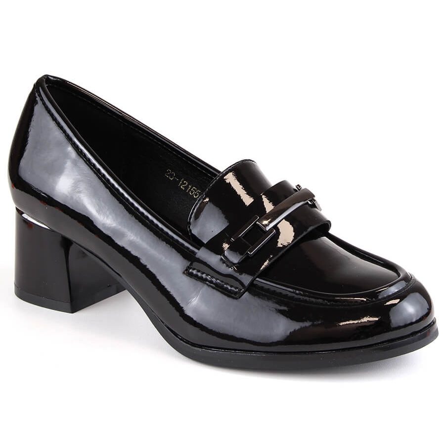 Stilvoll, universell und bequem – Lack-Damenschuhe, schwarze Mokassins mit hohen Absätzen, Potocki SZ12155, verleihen der Garderobe jeder Frau Klasse und Komfort.