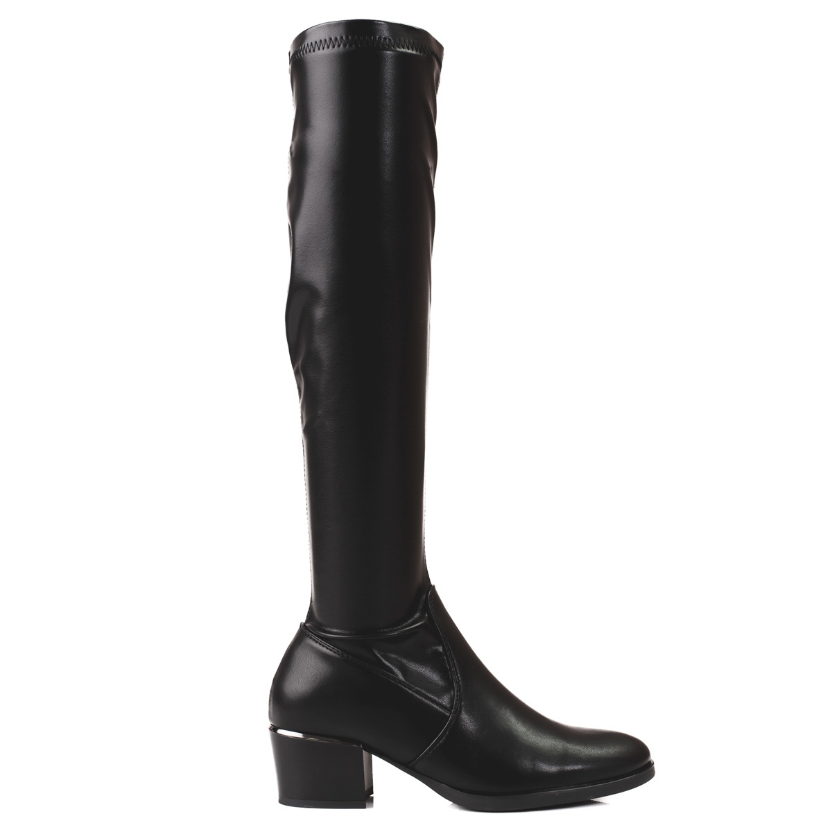 Die schwarzen Lackstiefel von Vinceza mit niedrigem Absatz sind die perfekte Wahl für jede Frau, die Eleganz mit Komfort verbinden möchte. Der klassische Schnitt über dem Knie mit eingearbeiteter, versteifter Ferse und runder Spitze verleiht ihnen einen einzigartigen Charakter, und die niedrigen 5 cm hohen Absätze sorgen für Stabilität und Tragekomfort, perfekt für den täglichen Gebrauch.