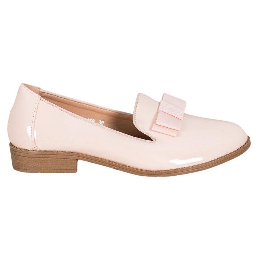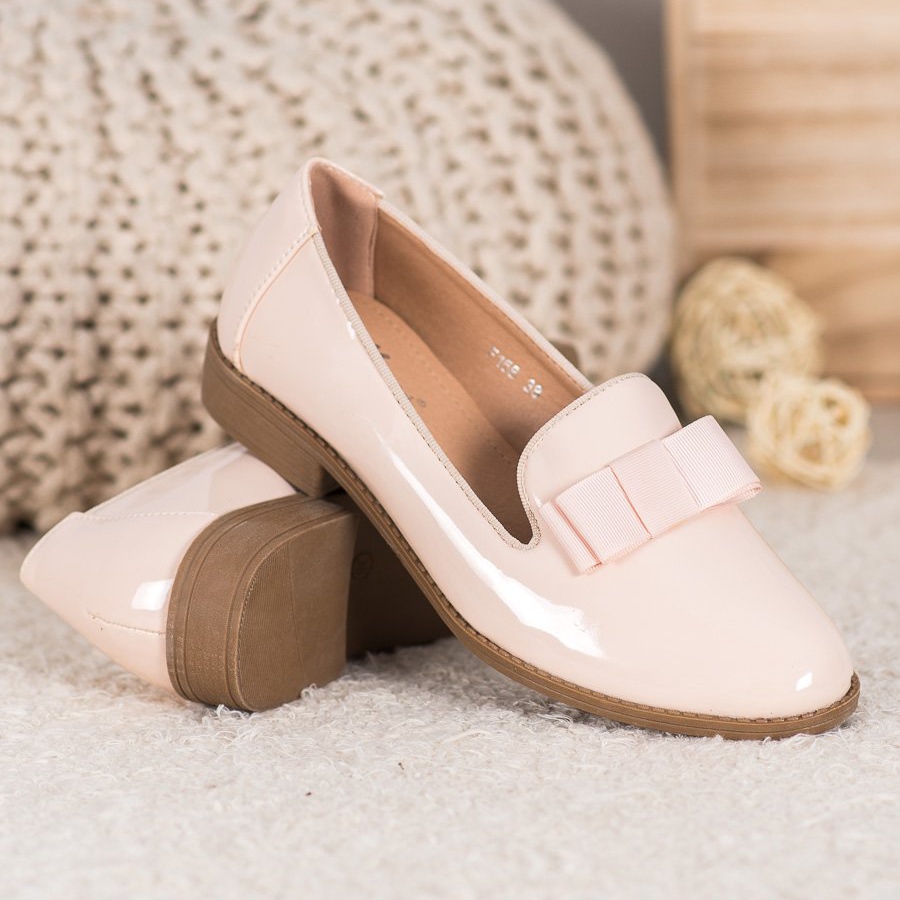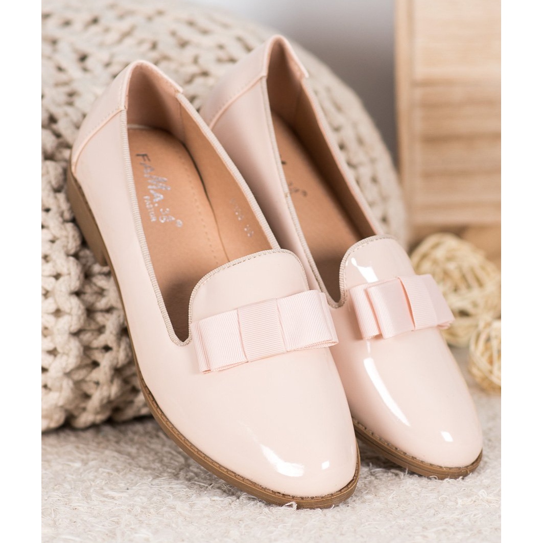 Wir präsentieren braune Lackleder-Lords mit Schleife der Marke Fama, die Eleganz und Komfort vereinen. Diese femininen Schuhe aus hochwertigem Faux-Wildleder begeistern durch ihre dezente, hellbraune Farbe, perfekt für Frühlings- und Sommertage.