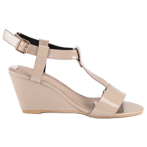 Entdecken Sie Eleganz und Komfort mit braunen Lack-Keilsandalen der Marke Filippo. Diese stilvollen Damenschuhe sind die perfekte Wahl für Sommertage, denn sie vereinen modisches Design und Tragekomfort. Die Sandalen bestehen aus Lackleder-Obermaterial und Naturleder in der Innensohle und bieten nicht nur ein attraktives Aussehen, sondern auch Haltbarkeit und Komfort an einem langen Tag.