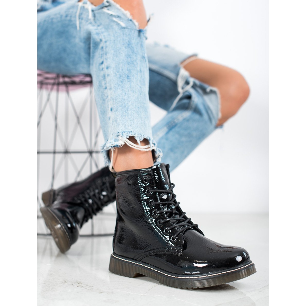Begegnen Sie dem Herbst mit Stil mit den Evento Lakierowane Modne Workers in Schwarz – Ihren neuen Lieblingsschuhen für den Alltag!