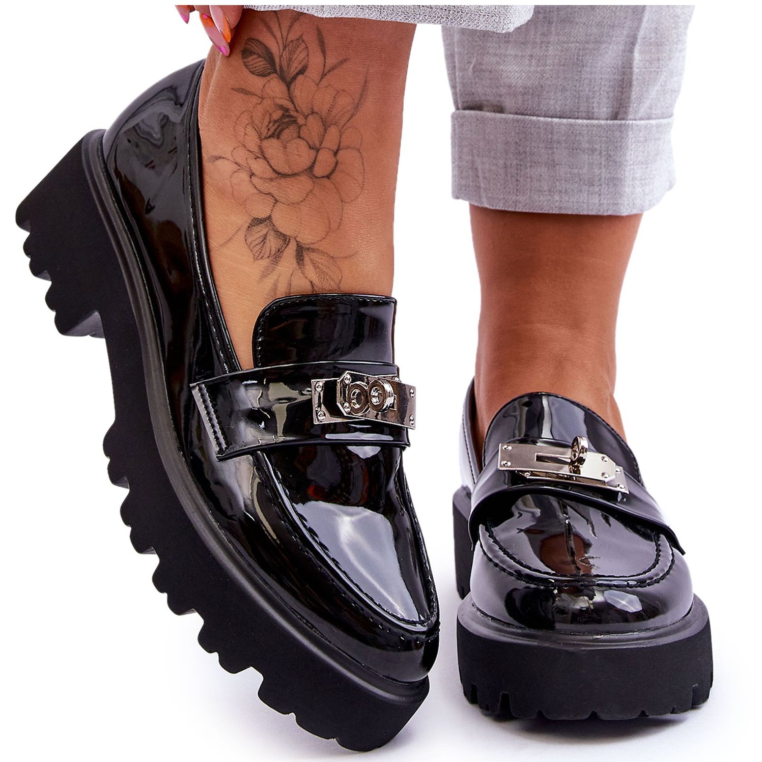 Details: FJ1 Lackierte Mokassins mit Plattformverzierung in Black Glory schwarz