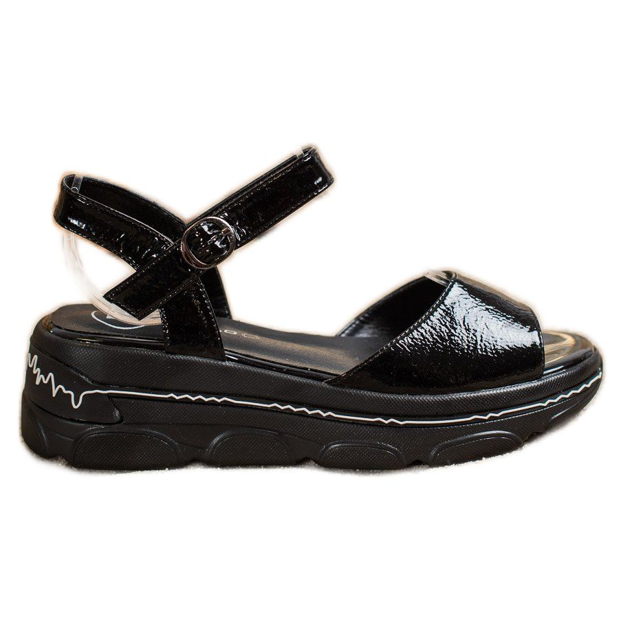 Filippo Filippo Lackierte Sandalen auf der Plattform schwarz