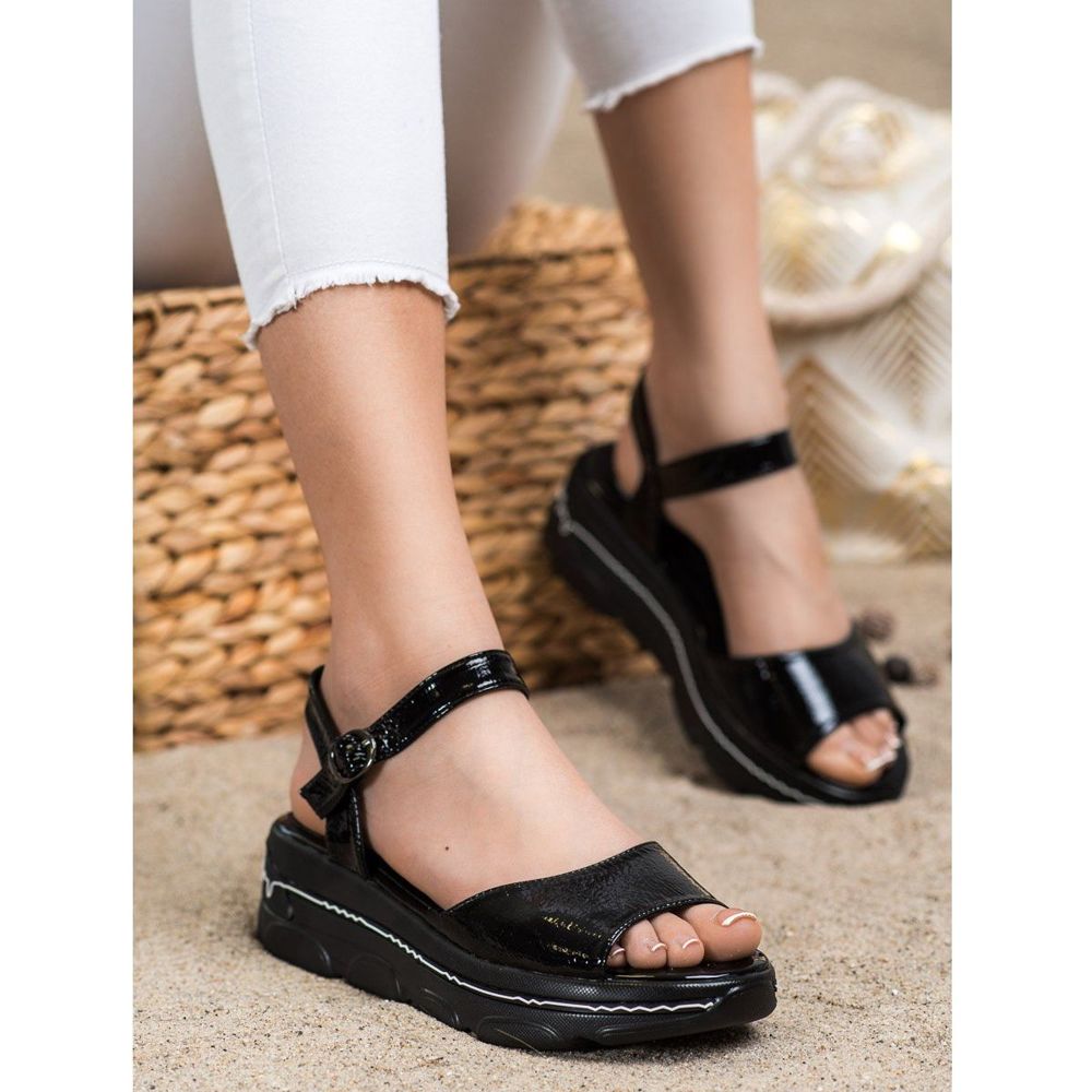 Filippo Lacksandalen auf der Plattform sind eine Wahl für Frauen, die Wert auf Stil, Komfort und hohe Verarbeitungsqualität legen. Verpackt in der Originalverpackung des Herstellers sind sie eine tolle Geschenkidee oder eine perfekte Ergänzung für Ihre Garderobe. Dank der schlichten schwarzen Farbe passen diese Sandalen zu vielen verschiedenen Outfits, ziehen die Blicke auf sich und verleihen jedem Look Klasse. Perfekt für Frühlingsspaziergänge, Sommerpartys oder Alltagsausflüge. Wählen Sie Mode und Komfort mit Filippo!