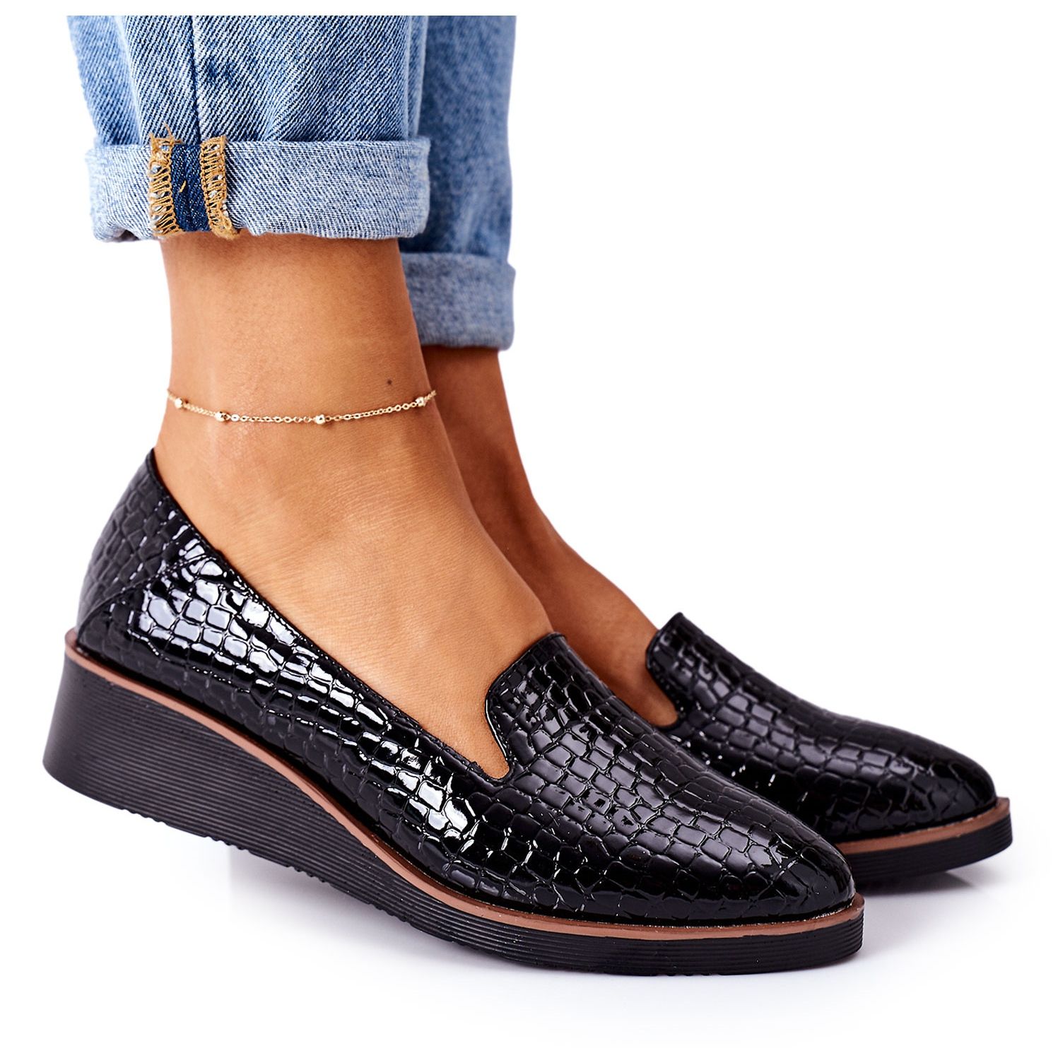 Wir präsentieren elegante VINCEZA 10675 Keilschuhe in klassischem Schwarz, die jedes Styling perfekt ergänzen. Diese aus lackiertem Faux-Wildleder gefertigten Schuhe vereinen Eleganz und modernes Design, und jedes Detail wurde sorgfältig im Hinblick auf Ihren Komfort durchdacht.