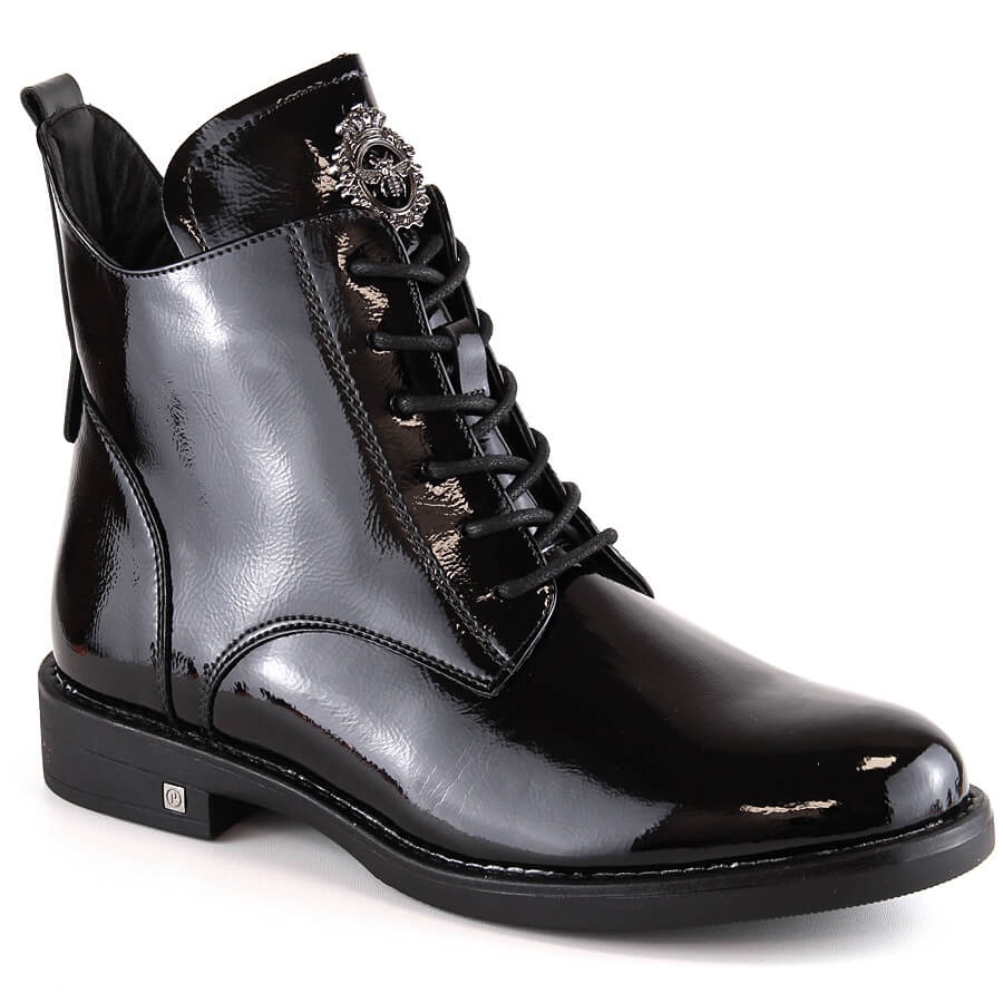 - Modell: Lackierte Damenstiefel mit Schnürsenkeln und Reißverschluss